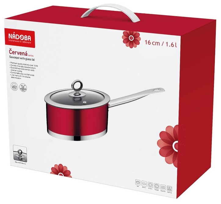 Кастрюля Ковш со стеклянной крышкой, 16 см/1,6 л, NADOBA, серия CERVENA, арт: 726514