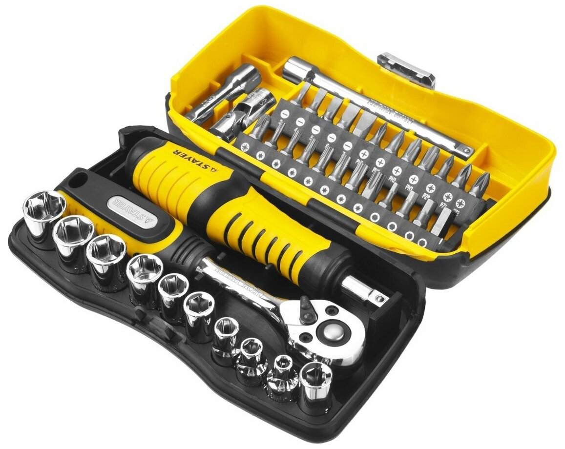 STAYER 39 шт., биты и торцовые головки с трещоткой и воротком 25135-H39