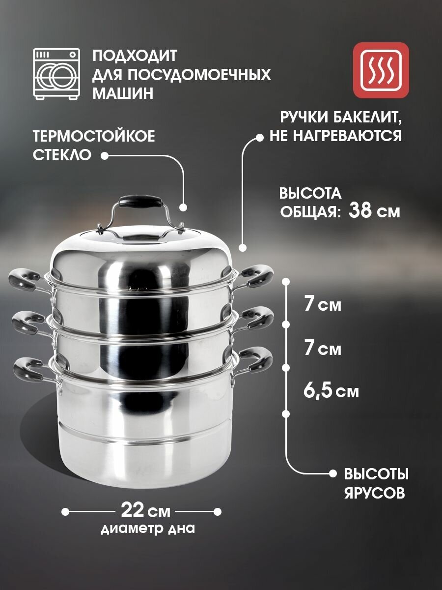 Кастрюля Мантоварка 3 - ярусная 26 см MAYER & BOCH 21469