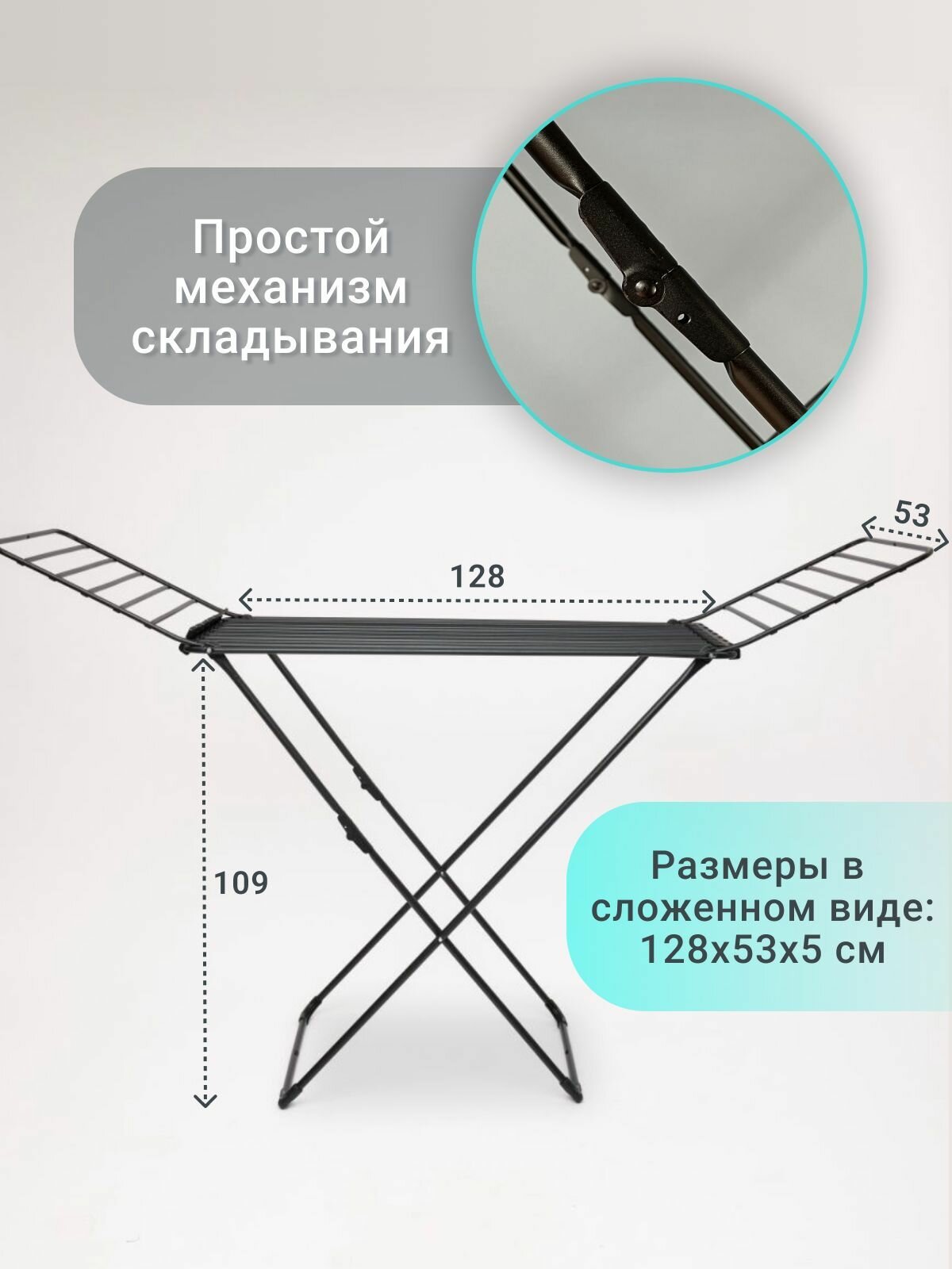 Складная сушилка для белья напольная 177 см х 53,5 см х 109 см толстые прутья 2 799 ₽ Подробнее