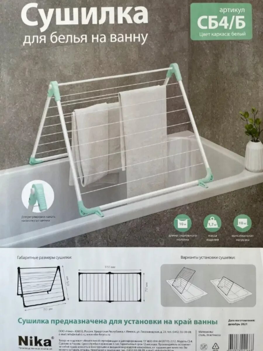 Сушилка для белья в ванну, складная 10 м Nika СБ4 798905 .