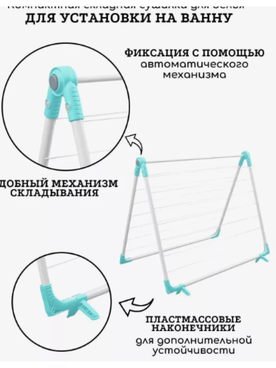 Сушилка для белья на ванну складная, рабочая длина 10 м./В упаковке шт: 1