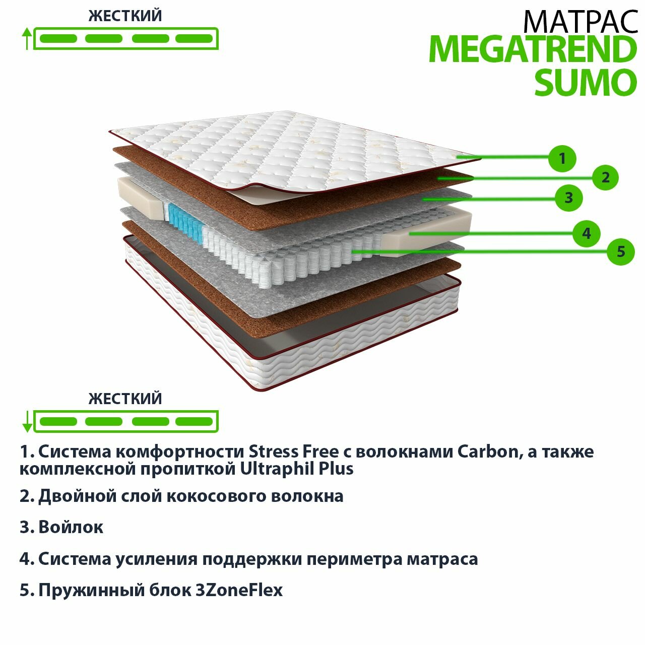 | Жесткость | средняя / высокая (3/5), двусторонний |