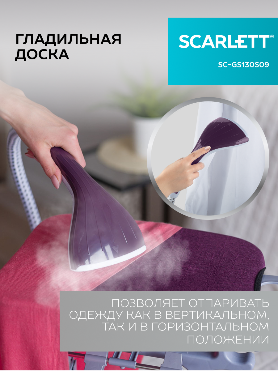 Отпариватель SCARLETT SC-GS130S09, доска, 1900 Вт, пар 45 г/мин, резервуар 2 л, 11 режимов, фиолетовый