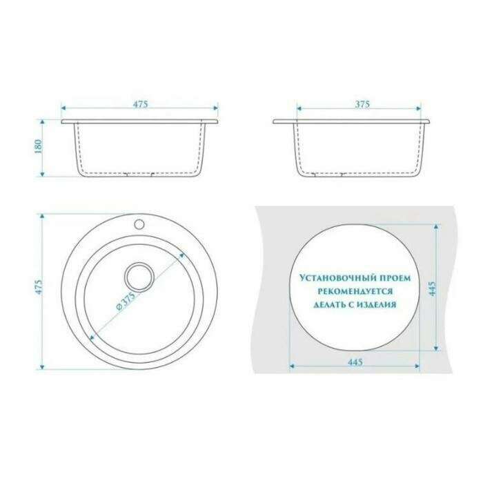 кух.мойка granit marrbaxx глянц виктория z30q8 (тёмно серая), круглая, 475х180