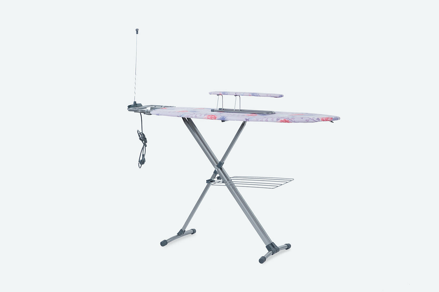 | Функции и возможности | подставка для утюга, регулировка высоты, подрукавник, полка для белья, держатель для вешалок, встроенная розетка, держатель провода |