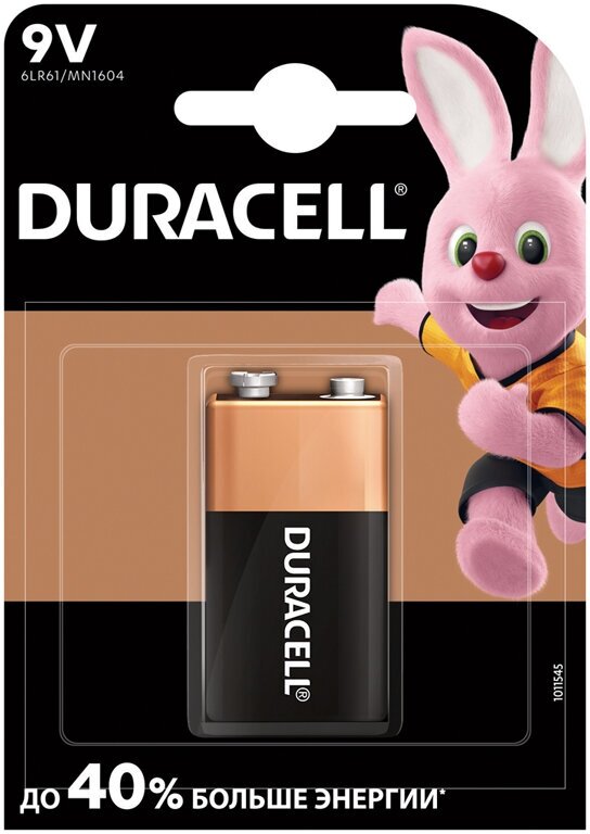 Duracell Батарейка алкалиновая Duracell Basic, 6LR61 (6LF22, MN1604)-1BL, 9В, крона, блистер, 1 шт.