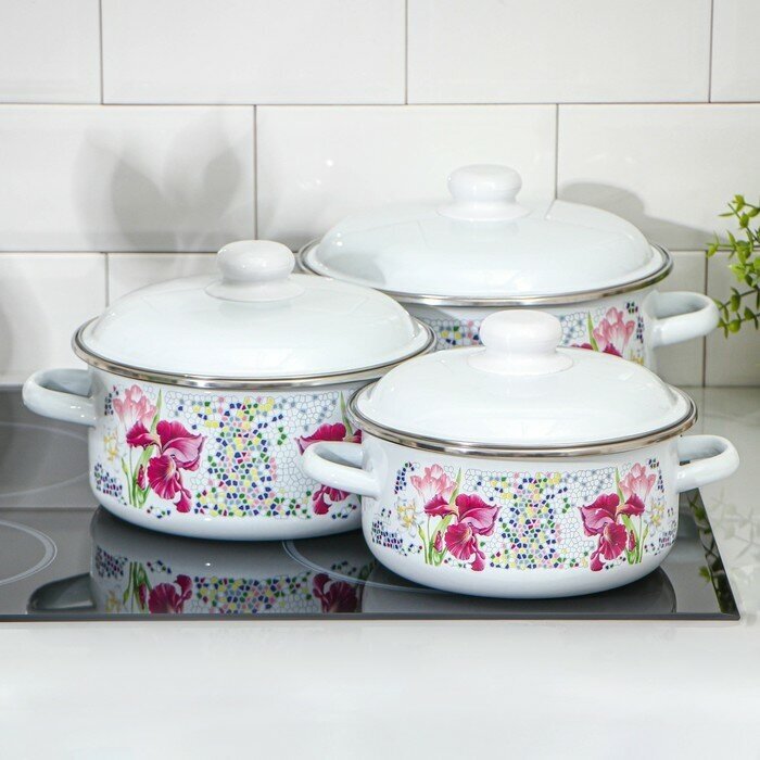 Набор эмалированных кастрюль СтальЭмаль Мозаика, 6 предметов, белоснежный