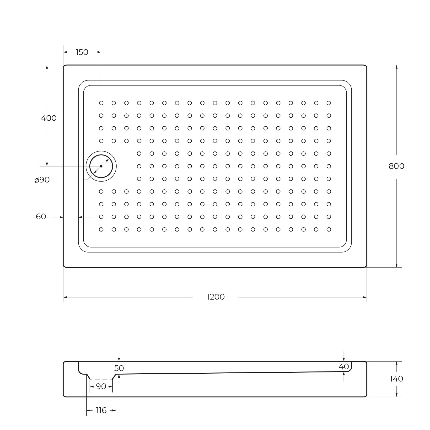 Душевой поддон Cezares Tray 1400x900x150 TRAY-A-AH-140/90-15-W
