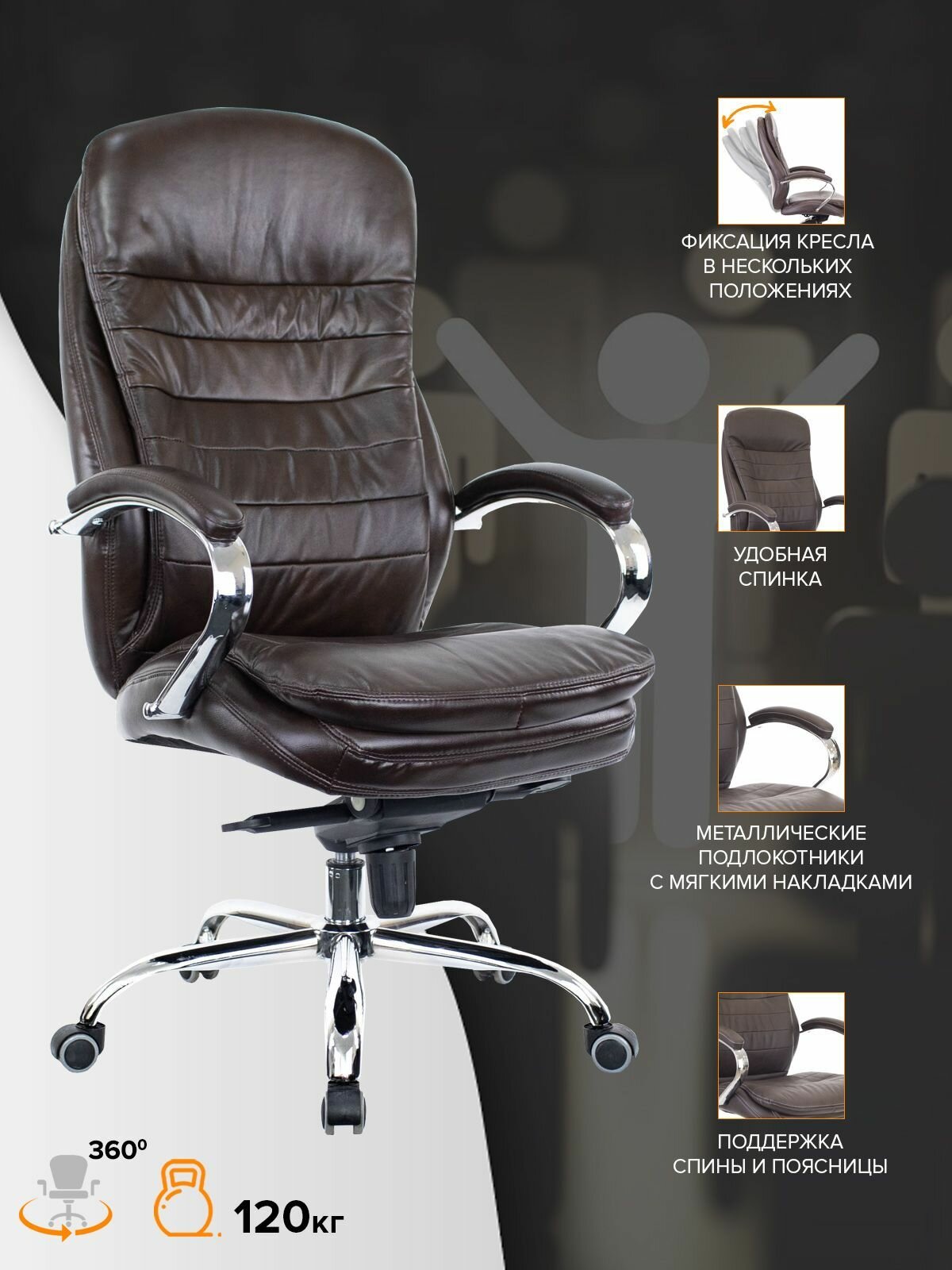 Компьютерное кресло офисное рабочее для руководителя Everprof Valencia M Кожа Коричневый