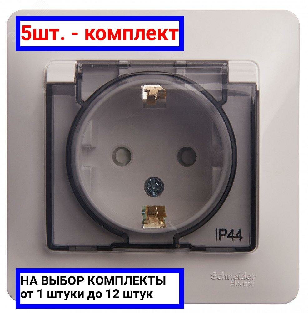 Розетка 5шт. - GLOSSA Розетка с заземлением со шторками с крышкой белая в сборе IP44 / Systeme Electric; арт. GSL000148; оригинал / - комплект 5шт