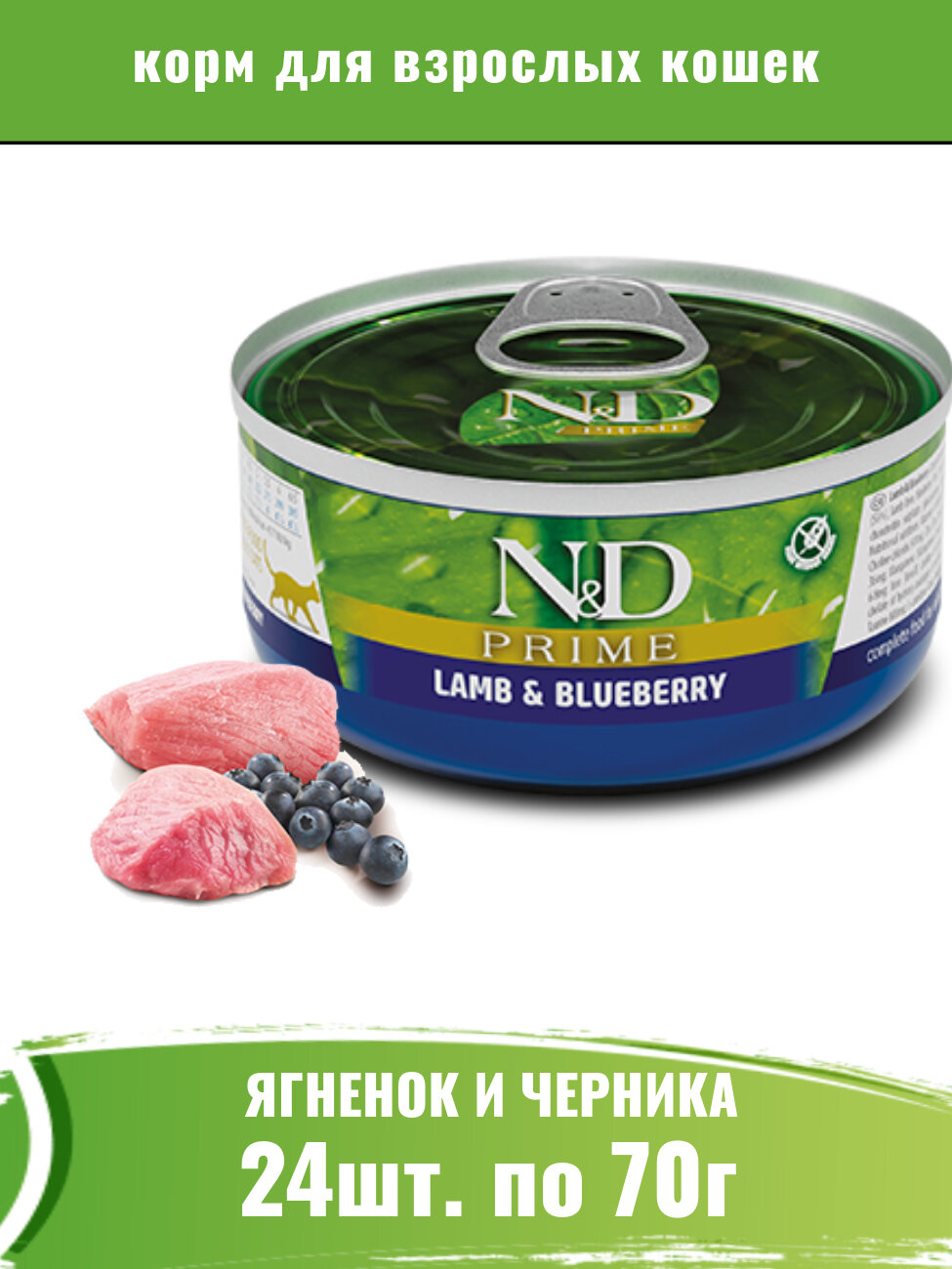 Корм для кошек Farmina N&D Cat Prime 24шт по 70гг консервы для кошек, ягненок и черника