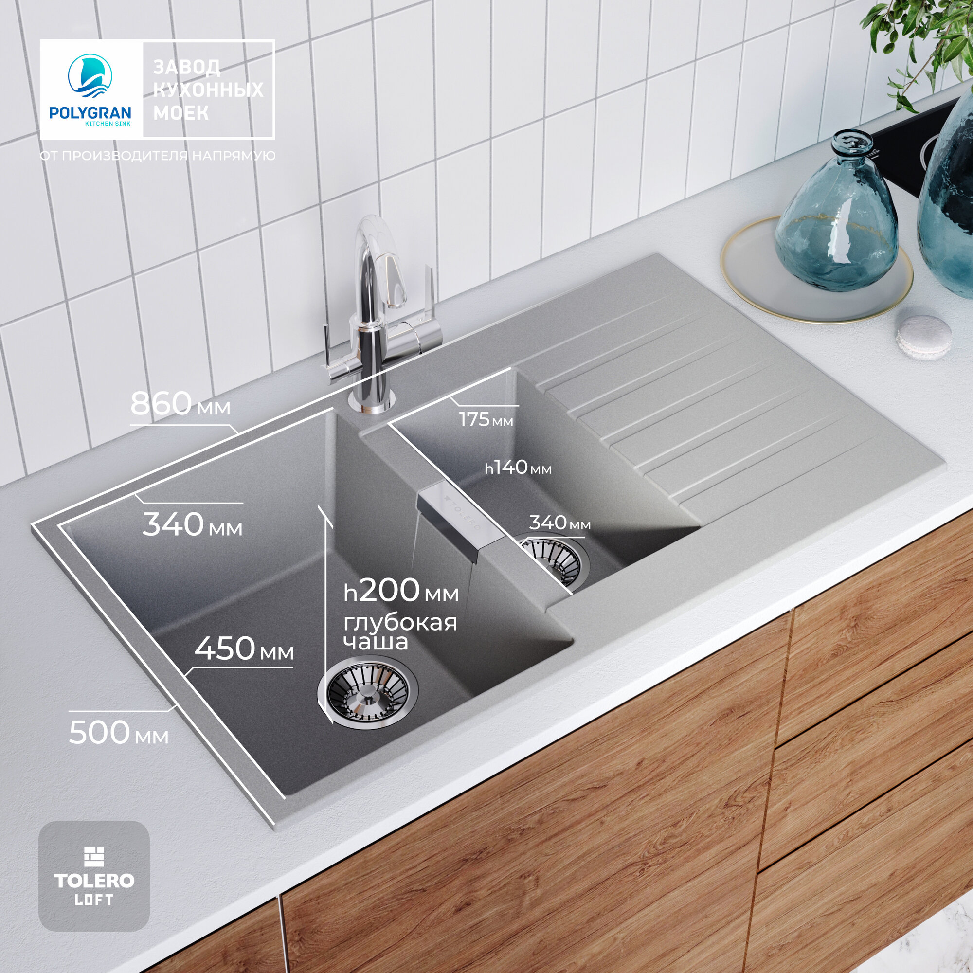 Кухонная мойка TOLERO Loft TL-860 (№701 (Серый))-цвет снят с производства 15 900 ₽ Подробнее