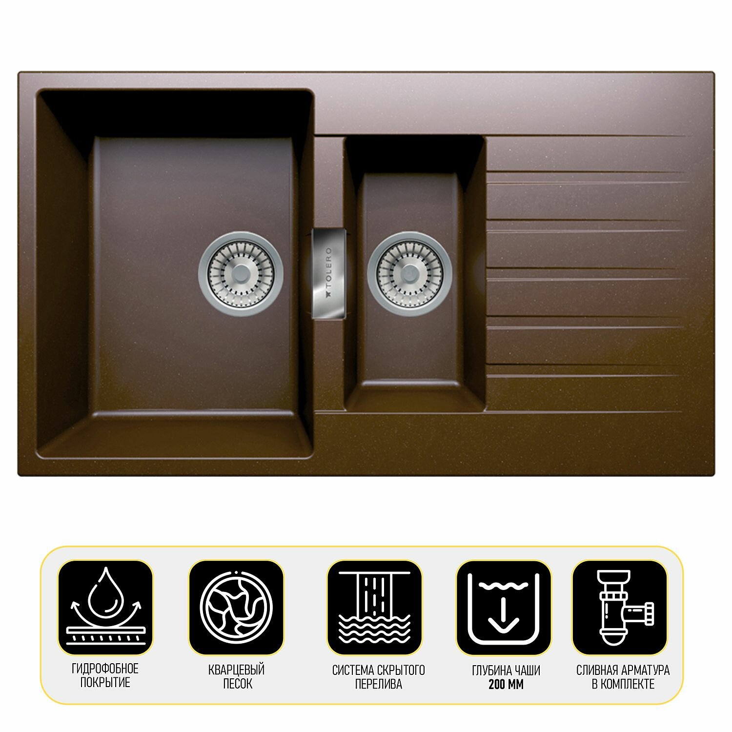 Кухонные мойки Кухонная мойка кварцевая TOLERO Loft TL-860 (№817- коричневый)