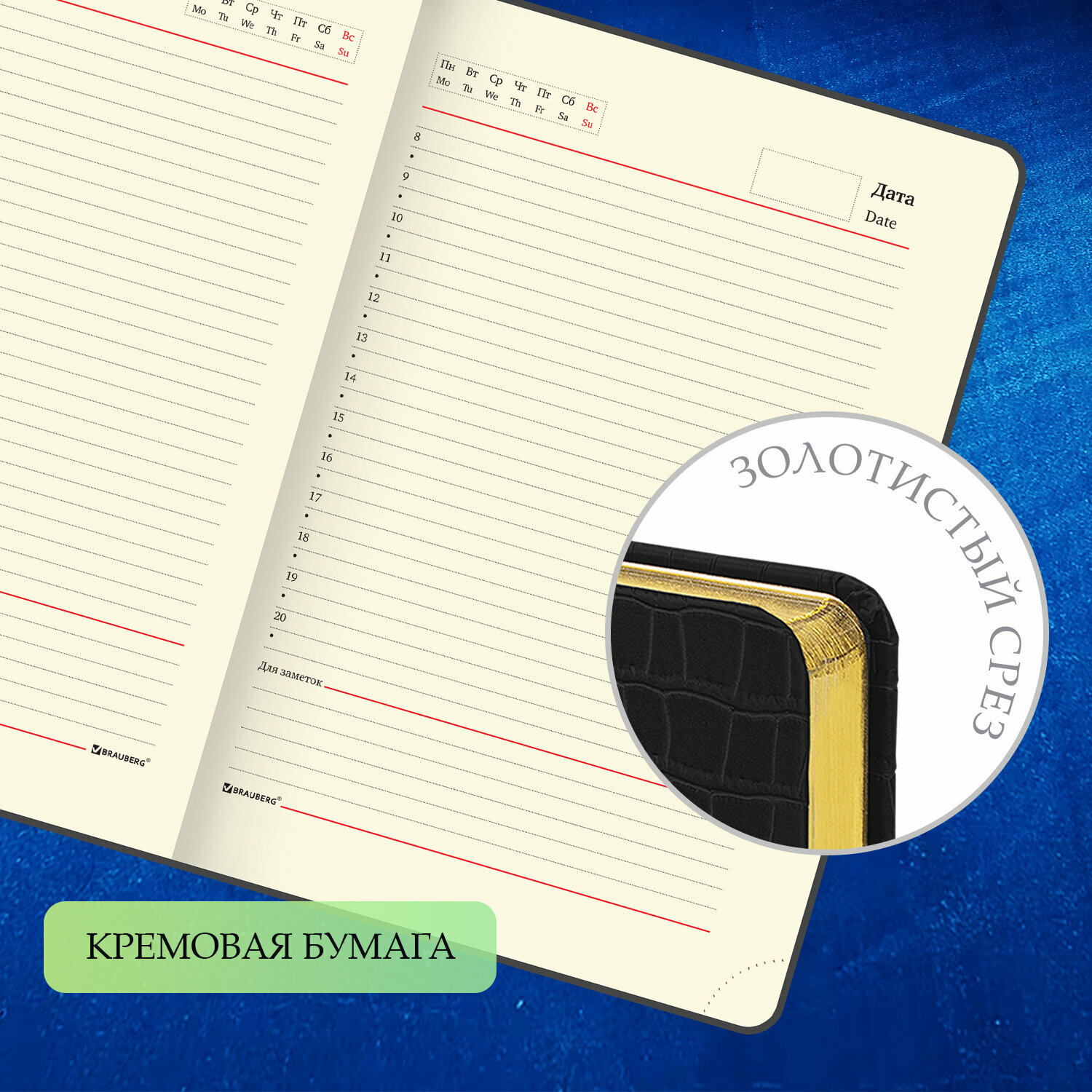 Недатированный ежедневник BRAUBERG А5 138x213 мм "Comodo", под матовую крокодиловую кожу, 160 л, 123838