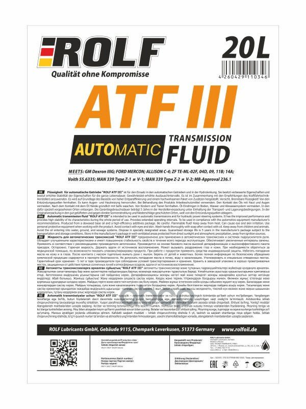 ROLF ROLF Масло трансмиссионное ROLF ATF III 4 л 322245 ROLF 322245