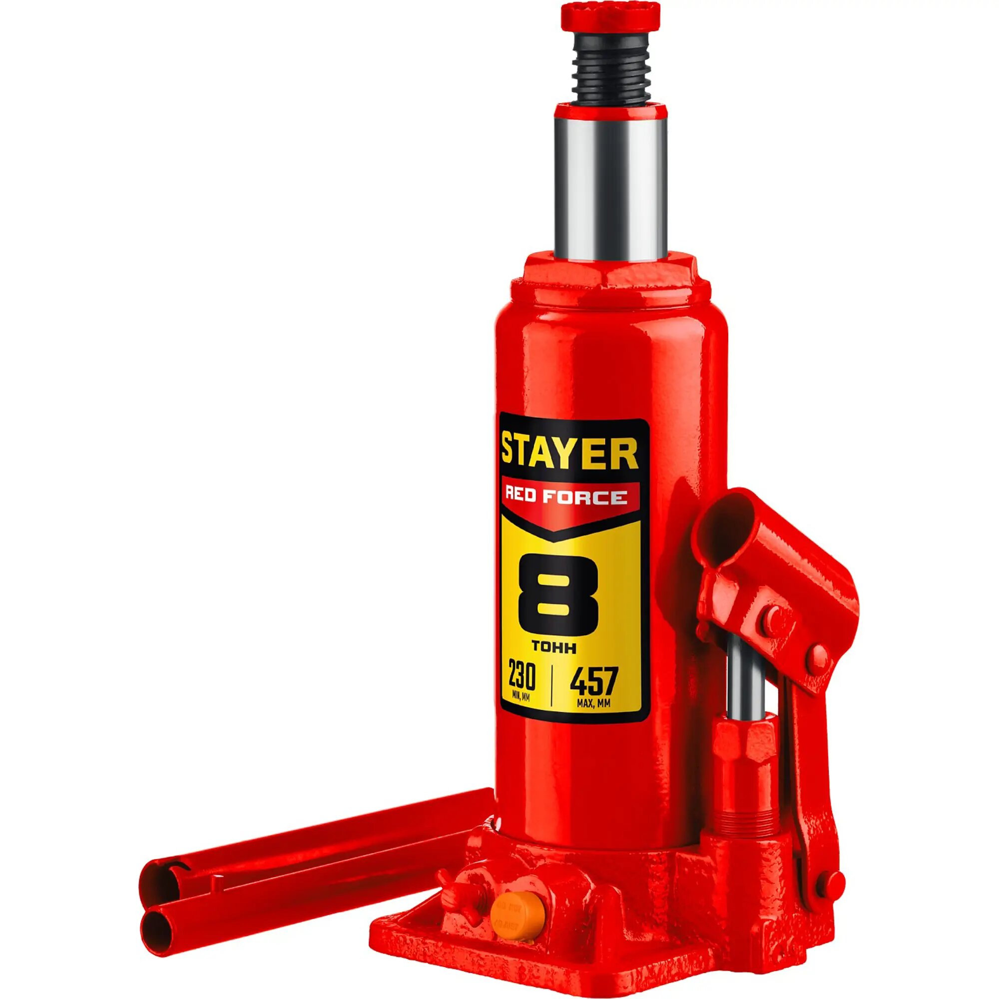 Домкрат Гидравлический бутылочный домкрат Stayer RED FORCE 8т, 230-457 мм 43160-8_z01