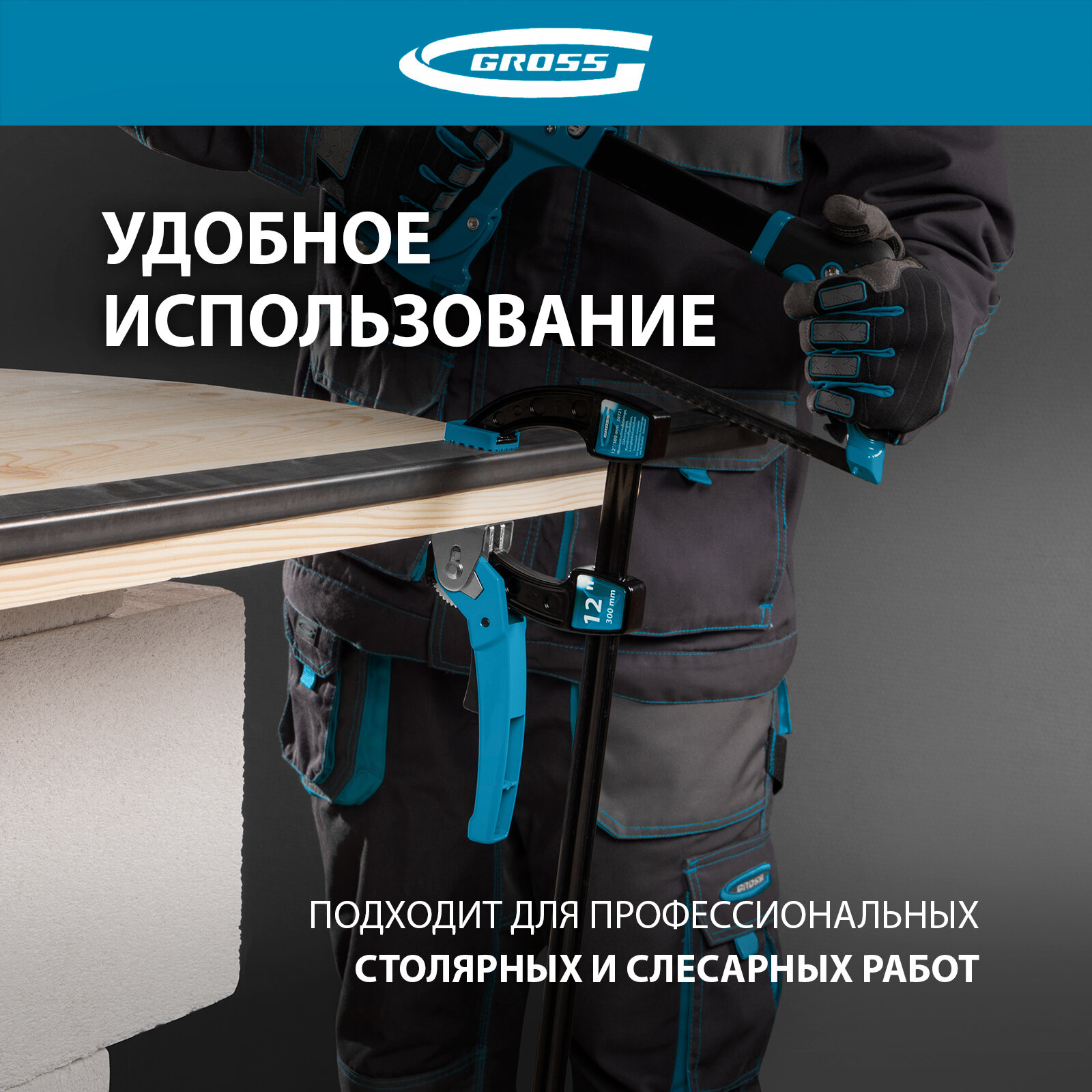 Струбцина реечная быстрозажимная 12, металлический корпус, рычажный храповой механизм, 300 мм Gross