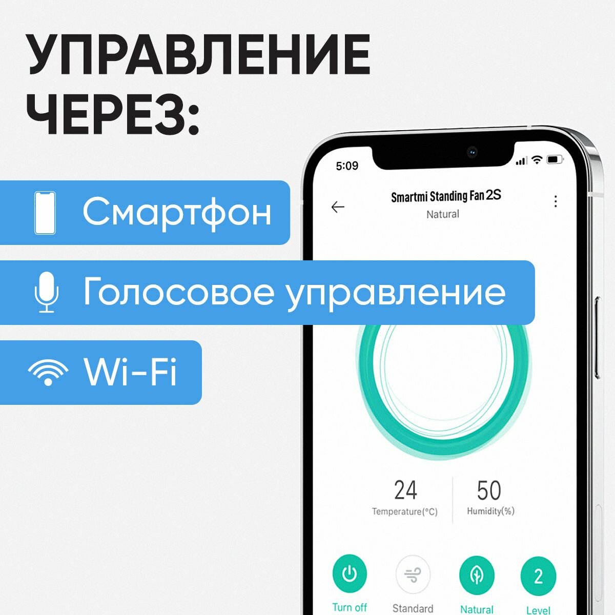 Вентилятор беспроводной Smartmi Standing Fan 2S белый, с Wi-Fi