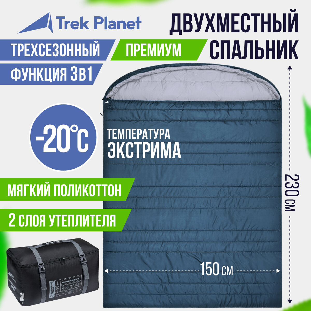 Спальный мешок TREK PLANET Aosta Double, двухместный, две молнии, цвет: синий 8 490 ₽ Подробнее