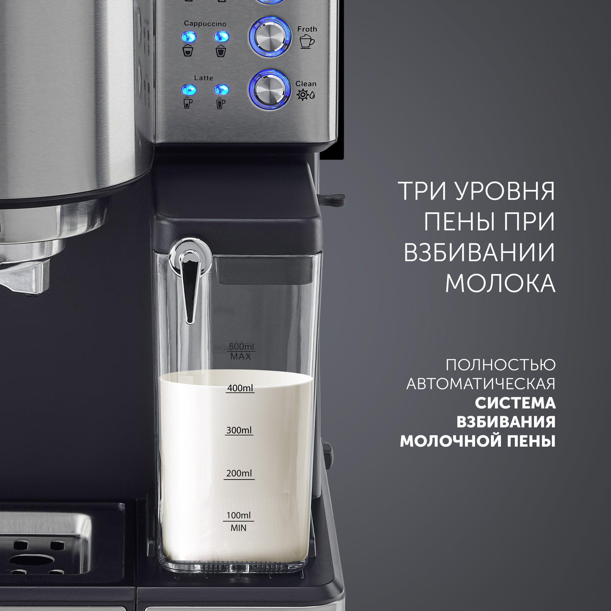 Кофеварка рожковая POLARIS PCM 1536E, 1350 Вт, объем 1,8 л, 15 бар, автокапучинатор, черная, 45727