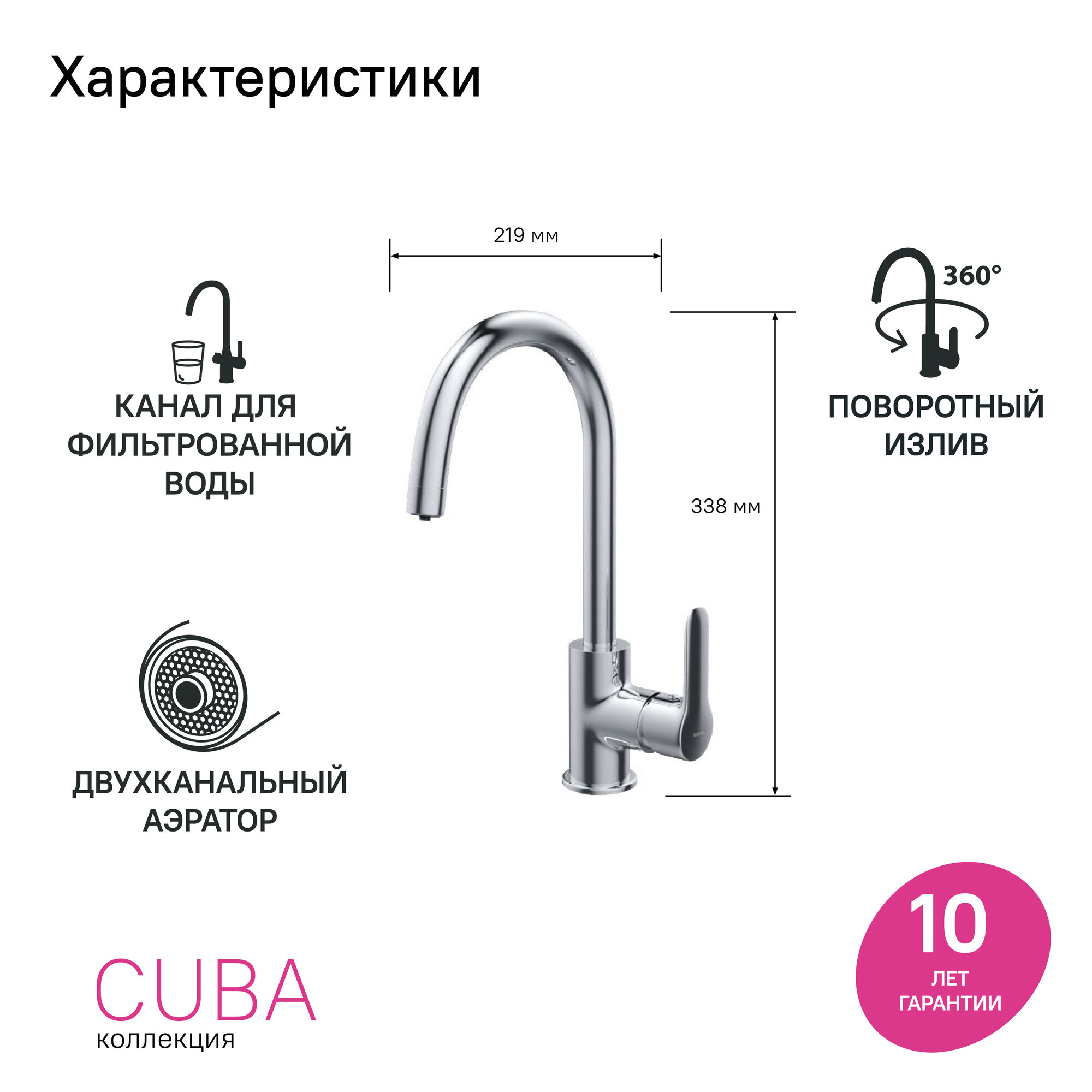 | Функции и возможности | поворотный излив / подключение к фильтру |