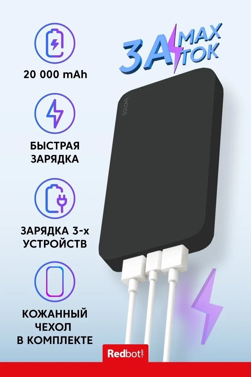 Внешний аккумулятор Power Bank SOLOVE 20000mAh 18W Quick Charge 3.0. Dual USB с 2xUSB выходом, кожаный чехол RUS, белый 3 042 ₽ Подробнее