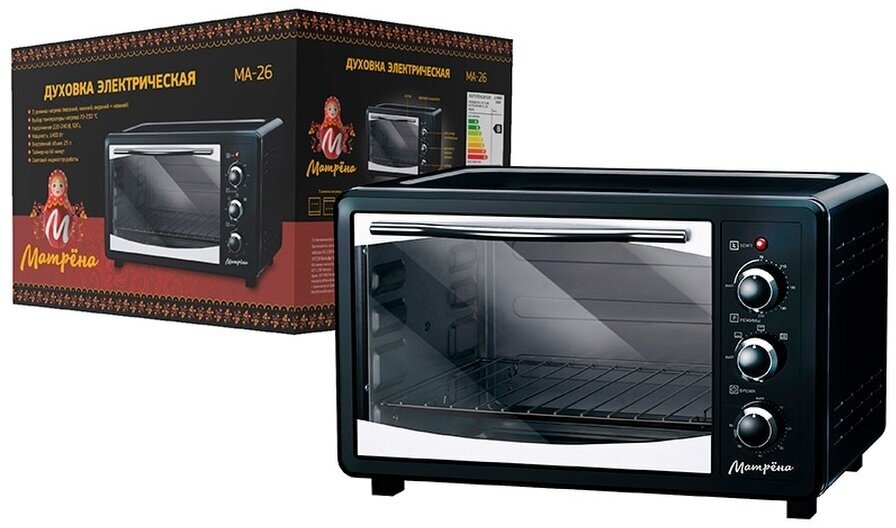 Электрическая духовка Матрена МА-26 черная Внутренний объём 25 л, термостат с диапазоном температур .