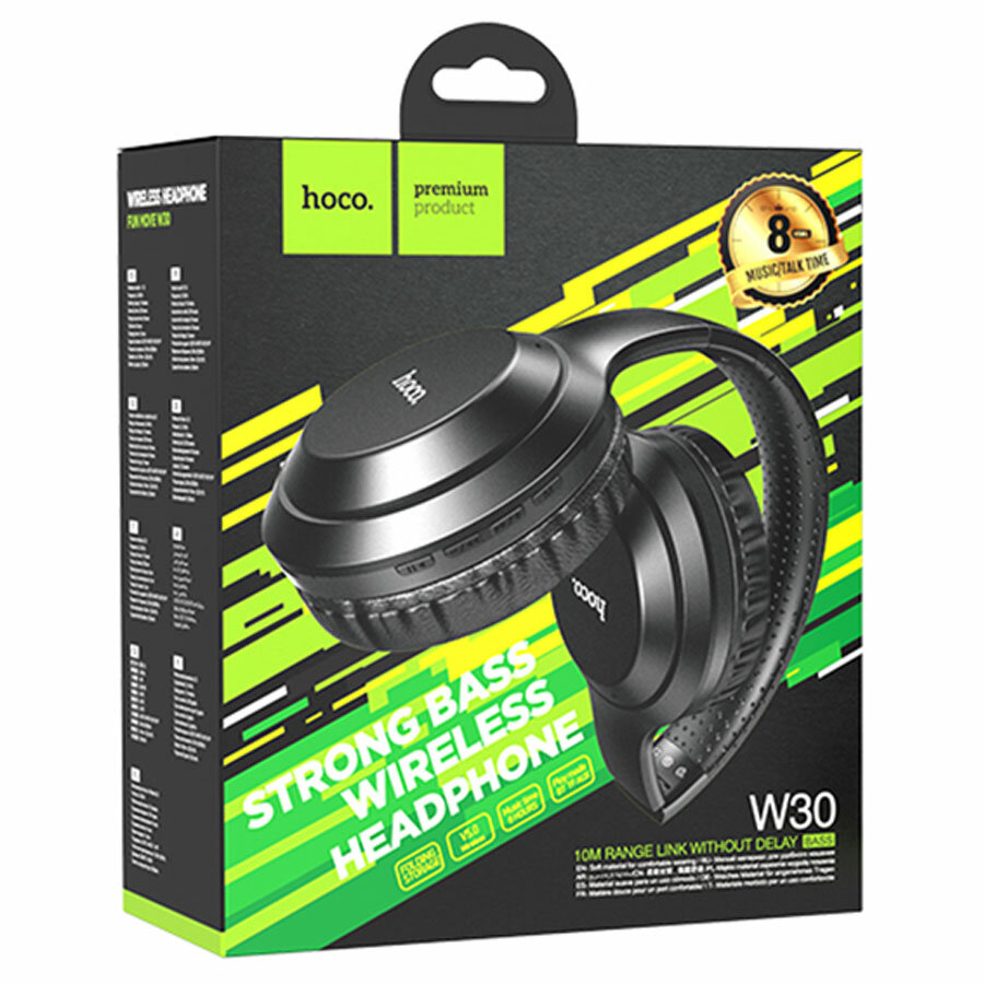 Наушники беспроводные, полноразмерные с микрофоном Bluetooth, 300mAh, 8 часов музыки, TF карт, AUX hoco. W30 Fun move - черный
