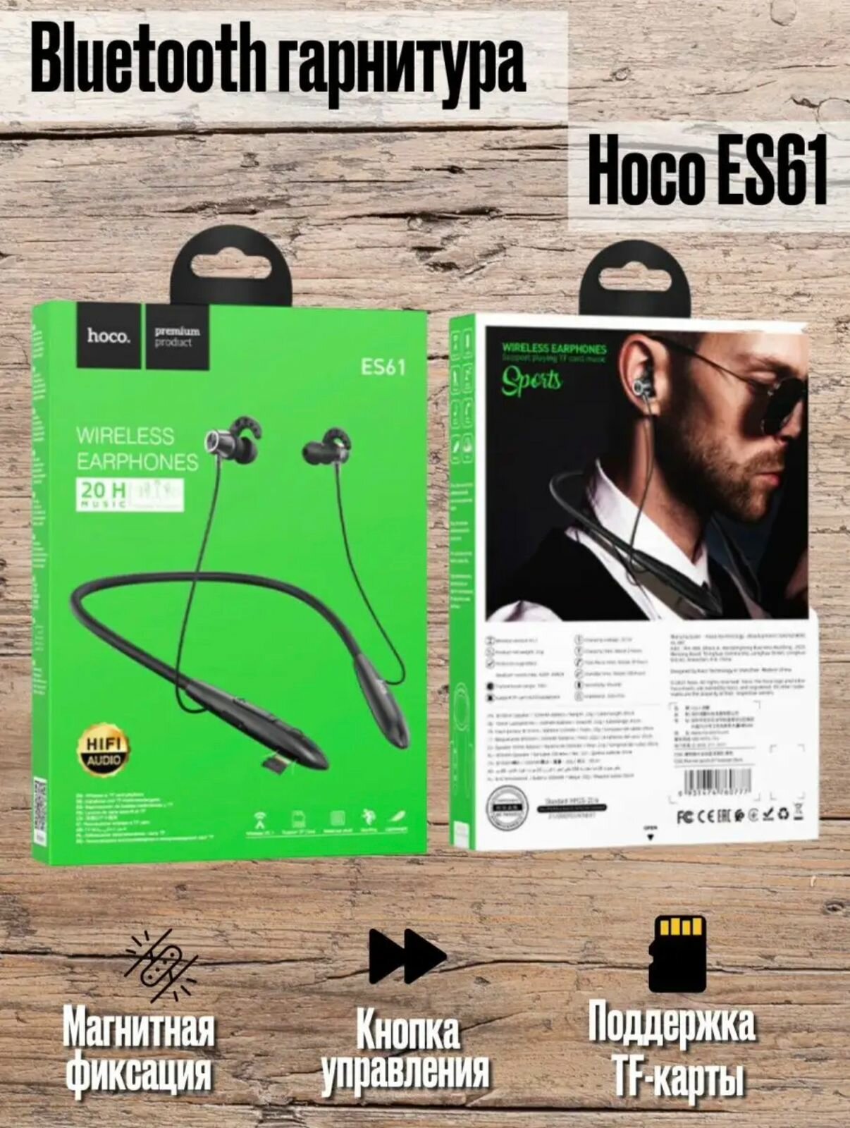 Наушники ES61, HOCO, беспроводные спортивные вакуумные наушники с обручем, черные