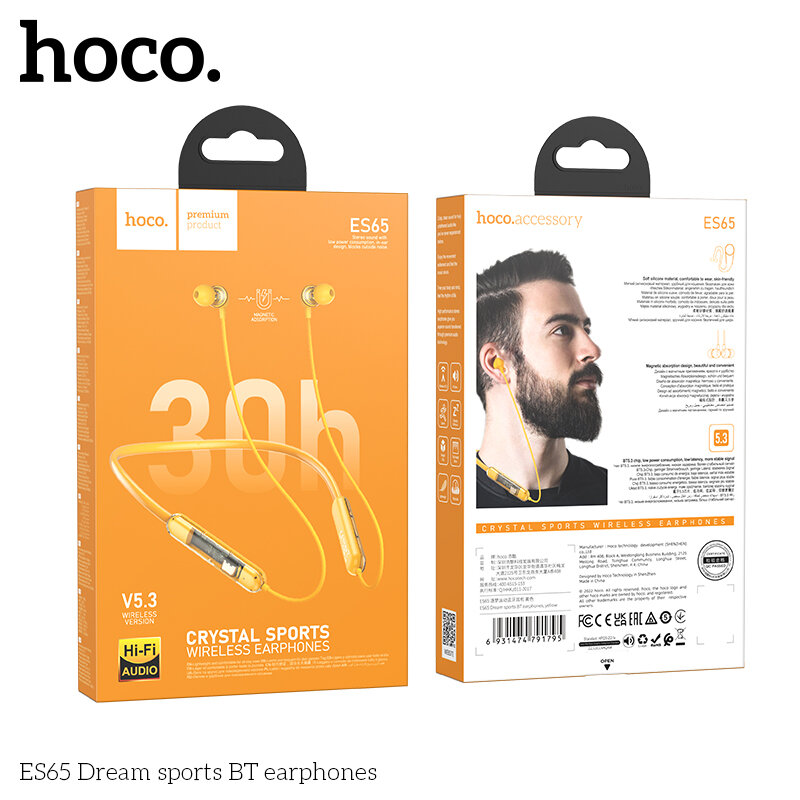 Гарнитура ES65 Bluetooth Sport Wireless Earphones HOCO желтая 888 ₽ Подробнее