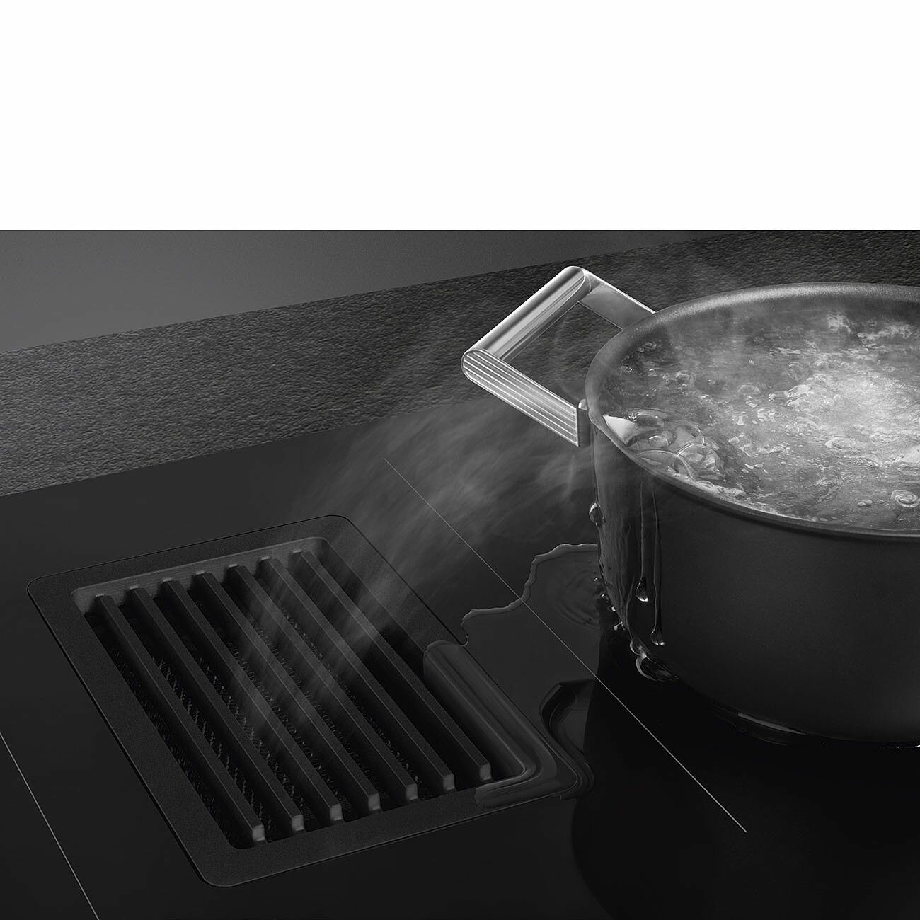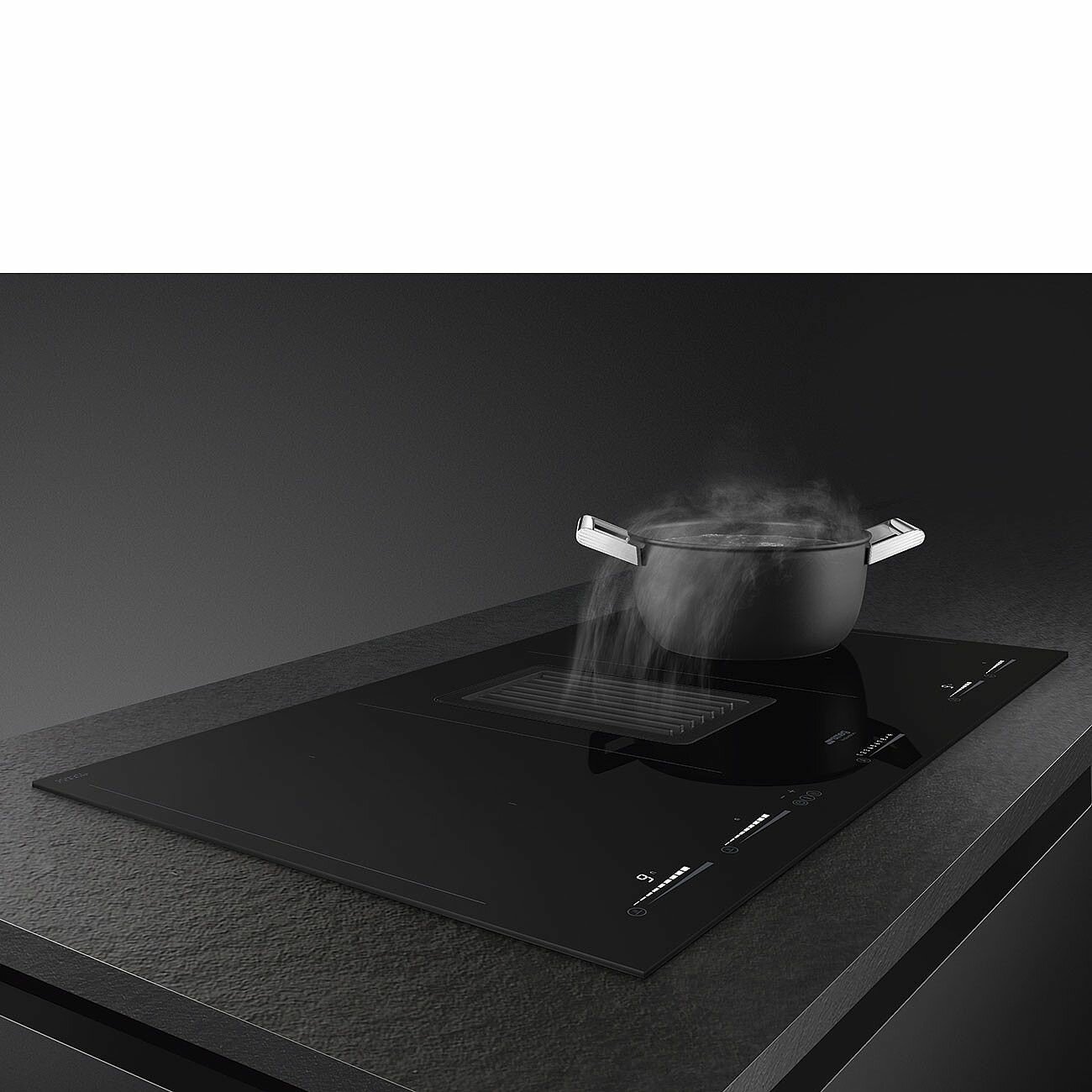 Варочная поверхность Индукционная варочная панель со встроенной вытяжкой SMEG HOBD682D1, черное стекло, 83 см, Multizone, автовентиляция, 8 уровней мощности, 700 м3/час