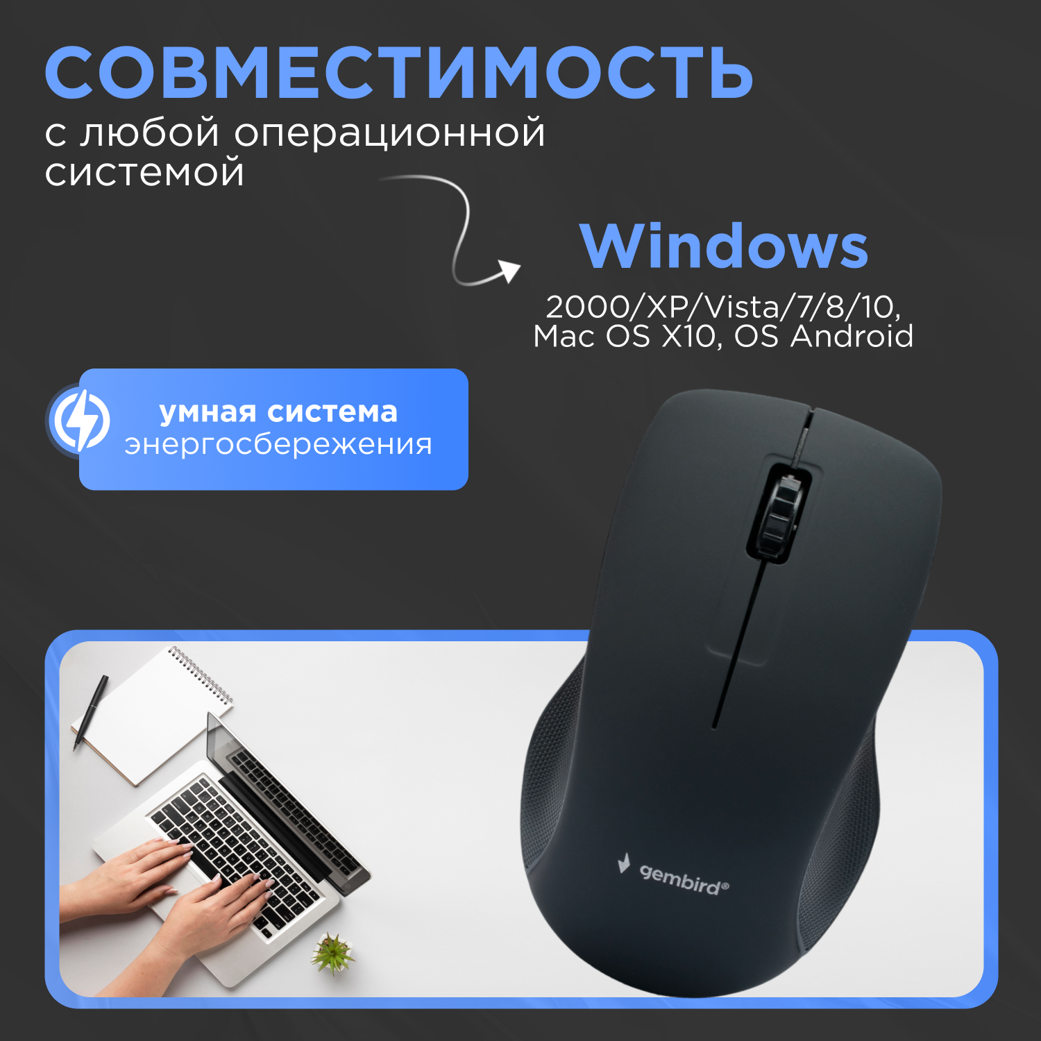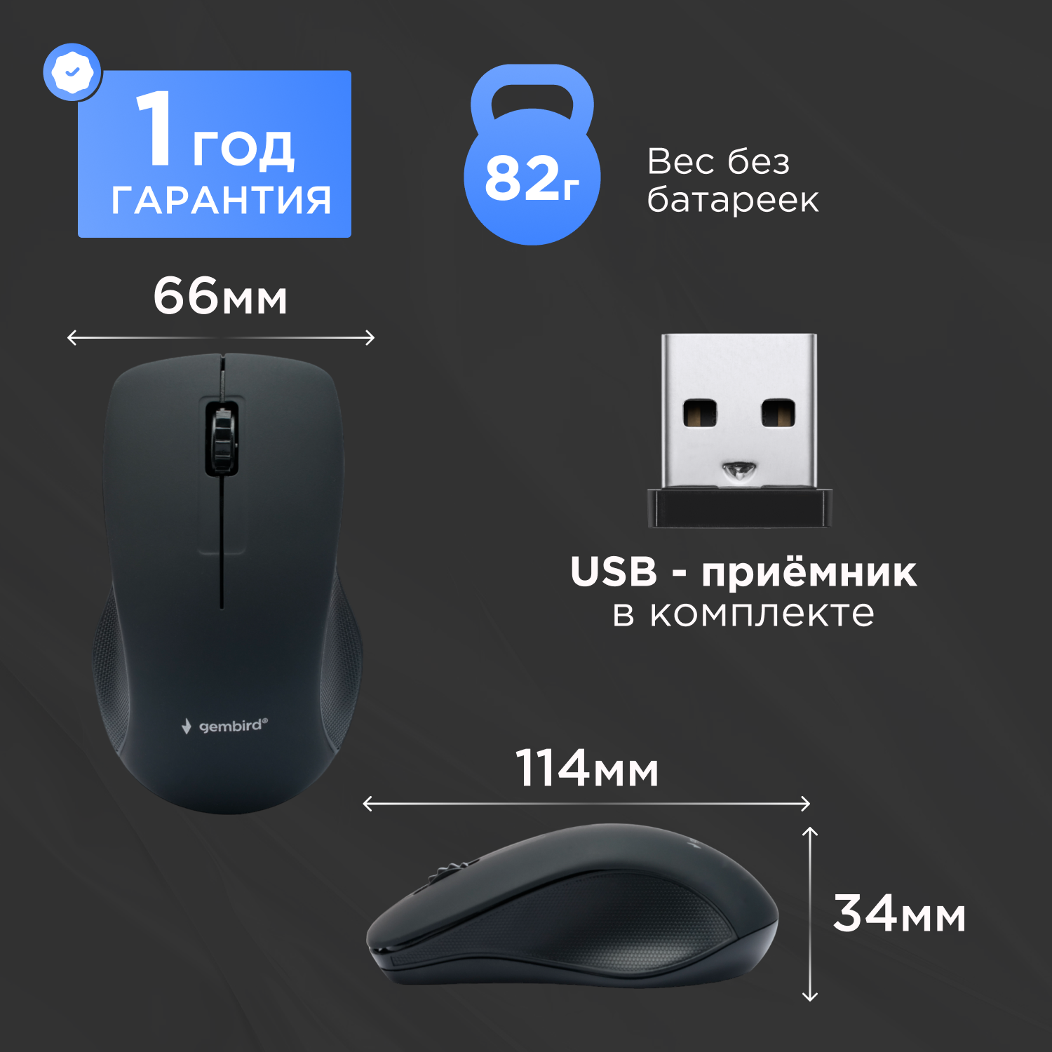 Мышь беспроводная Gembird MUSW-380, 1000 dpi, USB, черный (MUSW-380)