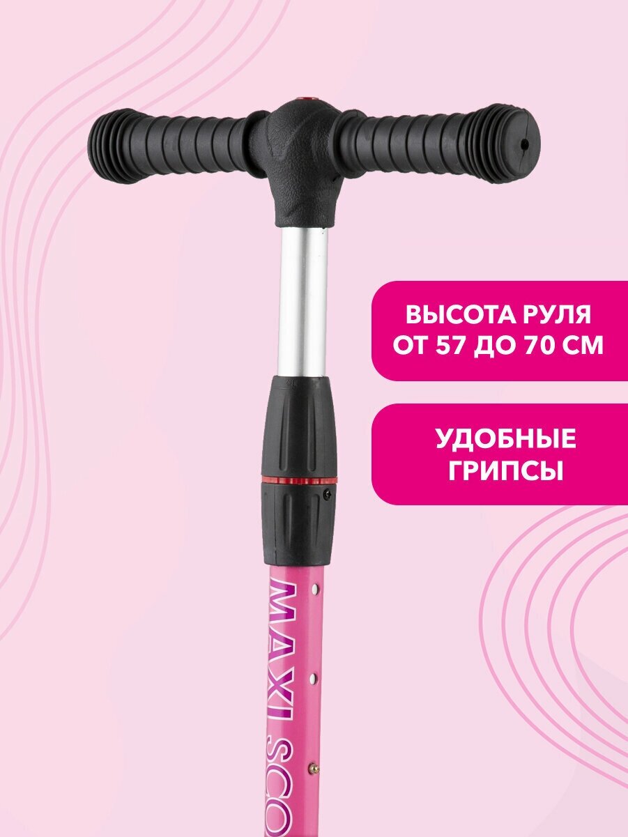 Самокат Трехколесный Складной Maxiscoo Junior Delux (2021) со Светящимися Колесами, Черный с Розовым