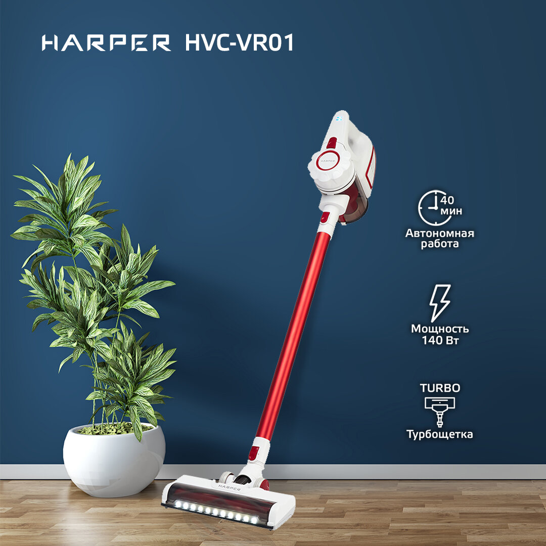 Вертикальный пылесос HARPER HVC-VR01 140 Вт, красный/белый 11 291 ₽ Подробнее