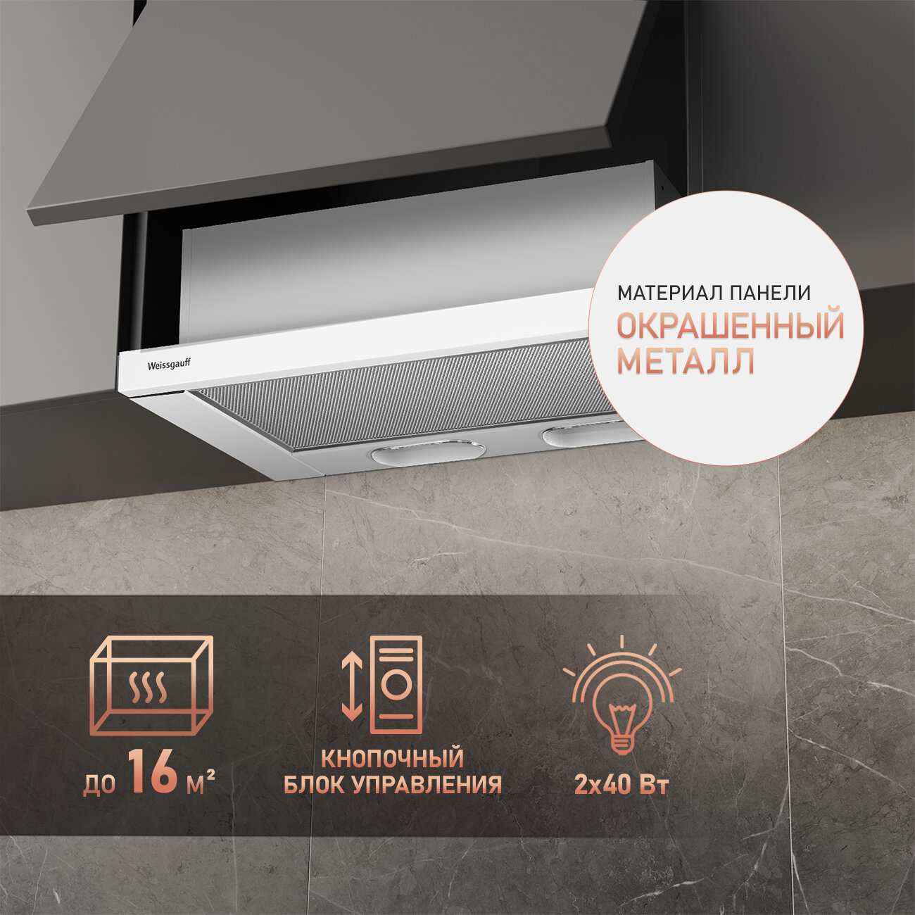 Вытяжка встраиваемая Weissgauff TEL 600 EW белый управление: кнопочное (1 мотор)