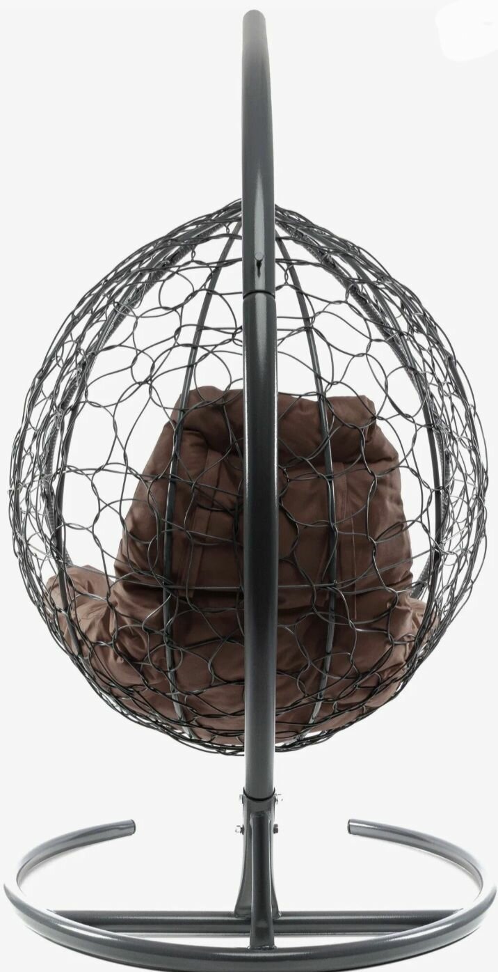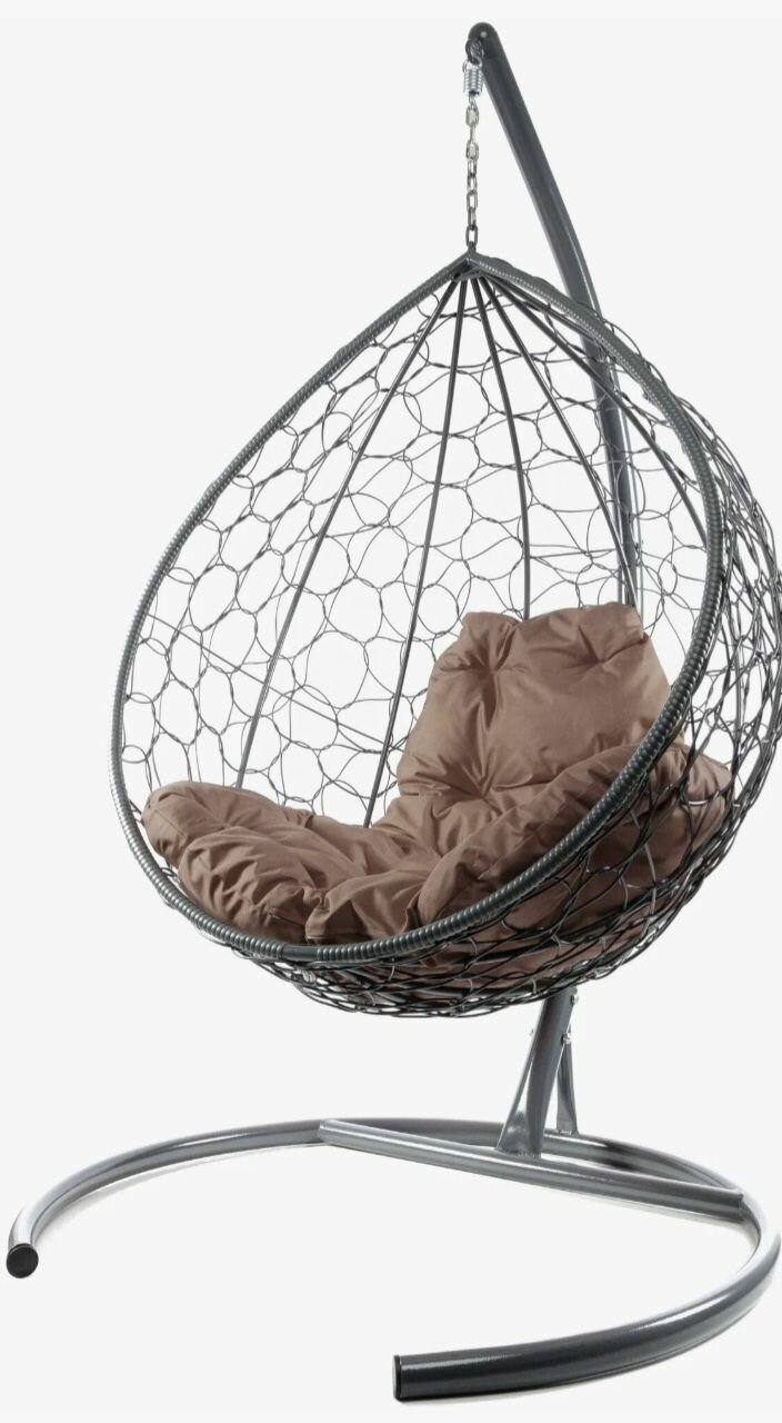 Подвесное кресло капля ротанг серое (без стойки), коричневая подушка