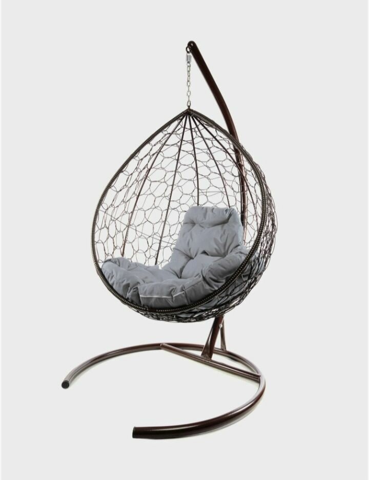 Подвесное кресло капля ротанг серое (без стойки), коричневая подушка