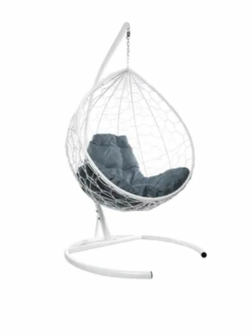 Подвесное кресло капля ротанг белое (без стойки), серая подушка