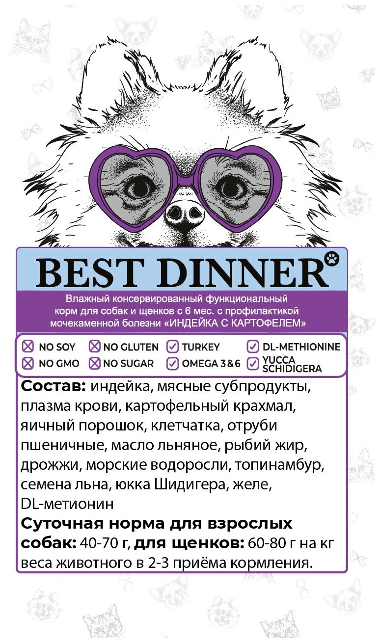 BEST DINNER EXCLUSIVE VET PROFI URINARY для взрослых собак и щенков при мочекаменной болезни с индейкой (340 гр х 12 шт)