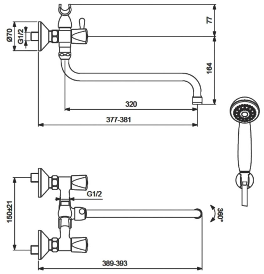 Лучшие цены. Система упрощенного монтажа SmartFix: есть. Монтаж на стандартных эксцентриках. Трубчатый поворотный излив. Длина излива: 320 мм. Расстояние от стены до аэратора: 381 мм. Аэратор Perlator: есть. Керамические кранбуксы с поворотом 180 градусов. Рукоятки из высокопрочного пластика. Индикатор холодной/горячей воды: есть. Переключение ванна/душ: ручное (позволяет использовать функцию «душ» даже при очень низком давлении воды). Душевой гарнитур в комплекте: да. Магазины в вашем городе.
