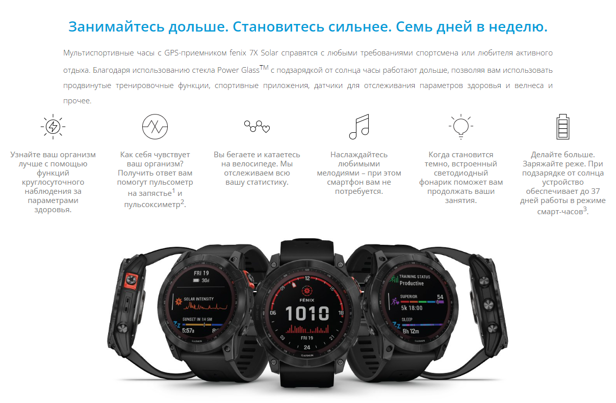 | Дополнительно | встроенный плеер / датчик освещения / Wi-Fi / NFC / бесконтактная оплата / Garmin Pay / акселерометр / гироскоп / полноценный фонарик |