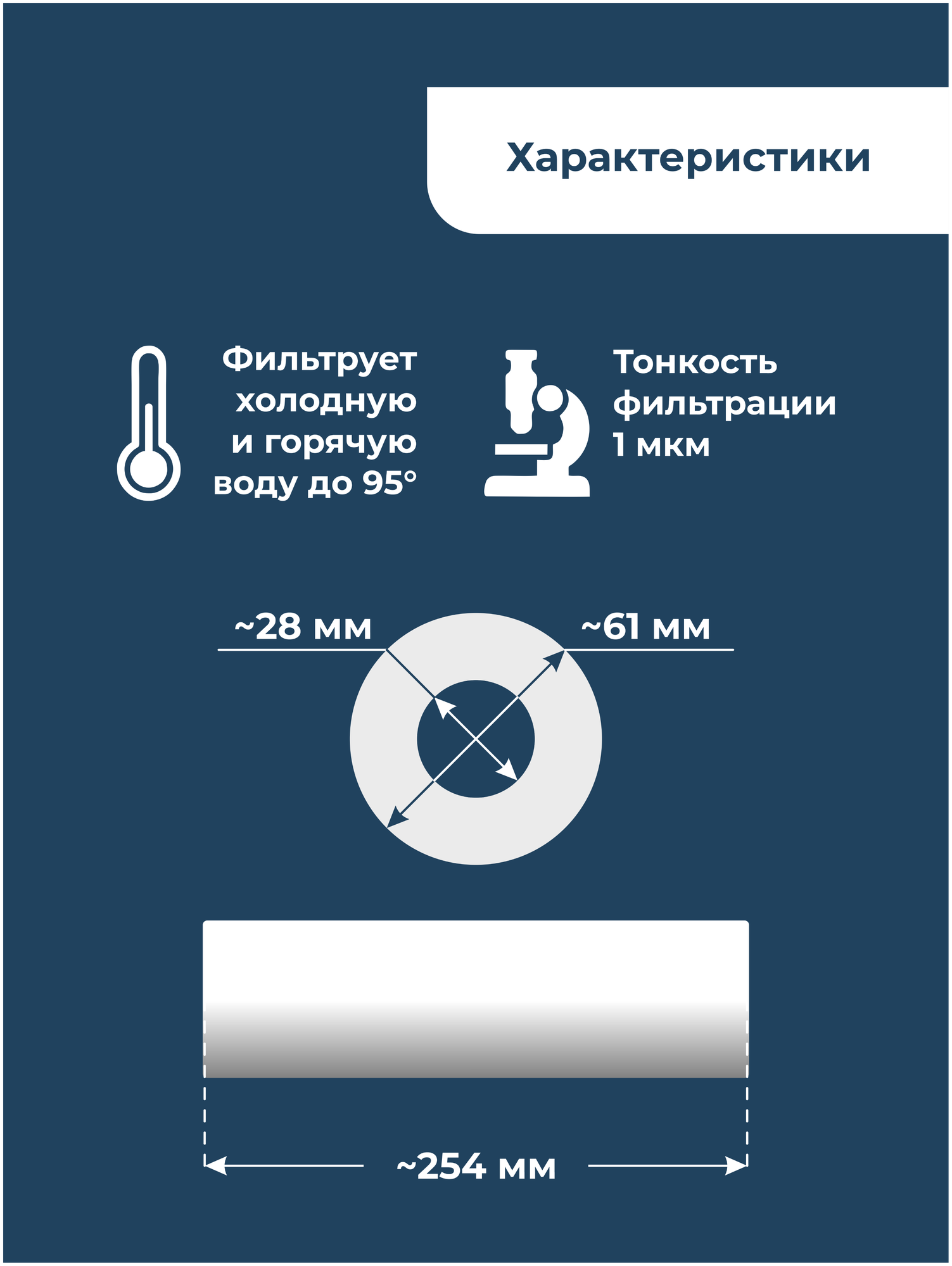 Картридж из полипропиленовой нити PS-10SL 1 мкм (ЭФН 63/250, PPY, B510, Профи) фильтр грубо очистки воды для Гейзер, Барьер, Аквафор, AquaPro, 60 шт