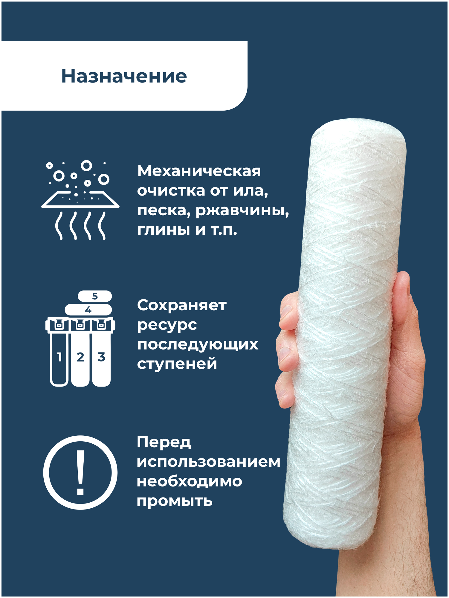 Картридж из полипропиленовой нити PS-10SL 1 мкм (ЭФН 63/250, PPY, ВП-10М) веревочный фильтр грубой очистки воды, намоточный для Гейзер, Барьер,Аквафор