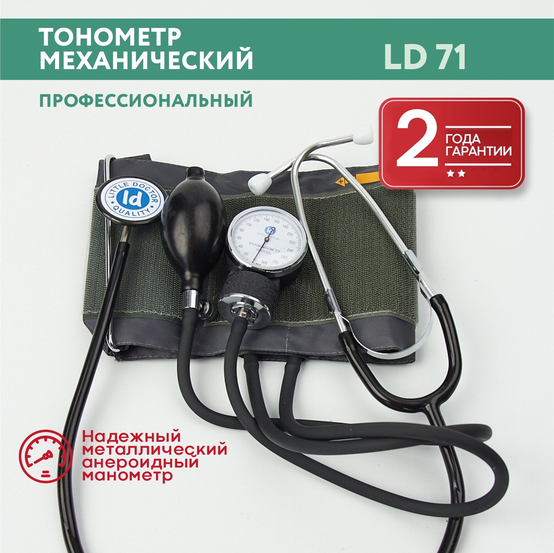 Тонометр LITTLE DOCTOR механический LD-71 со стетоскопом, манжета 25-36 см