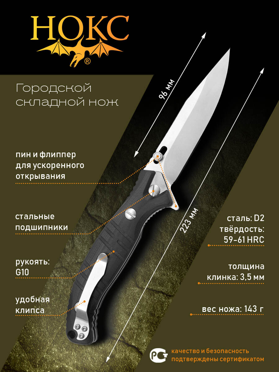 Складной нож нокс Геккон, сталь D2, рукоять G10