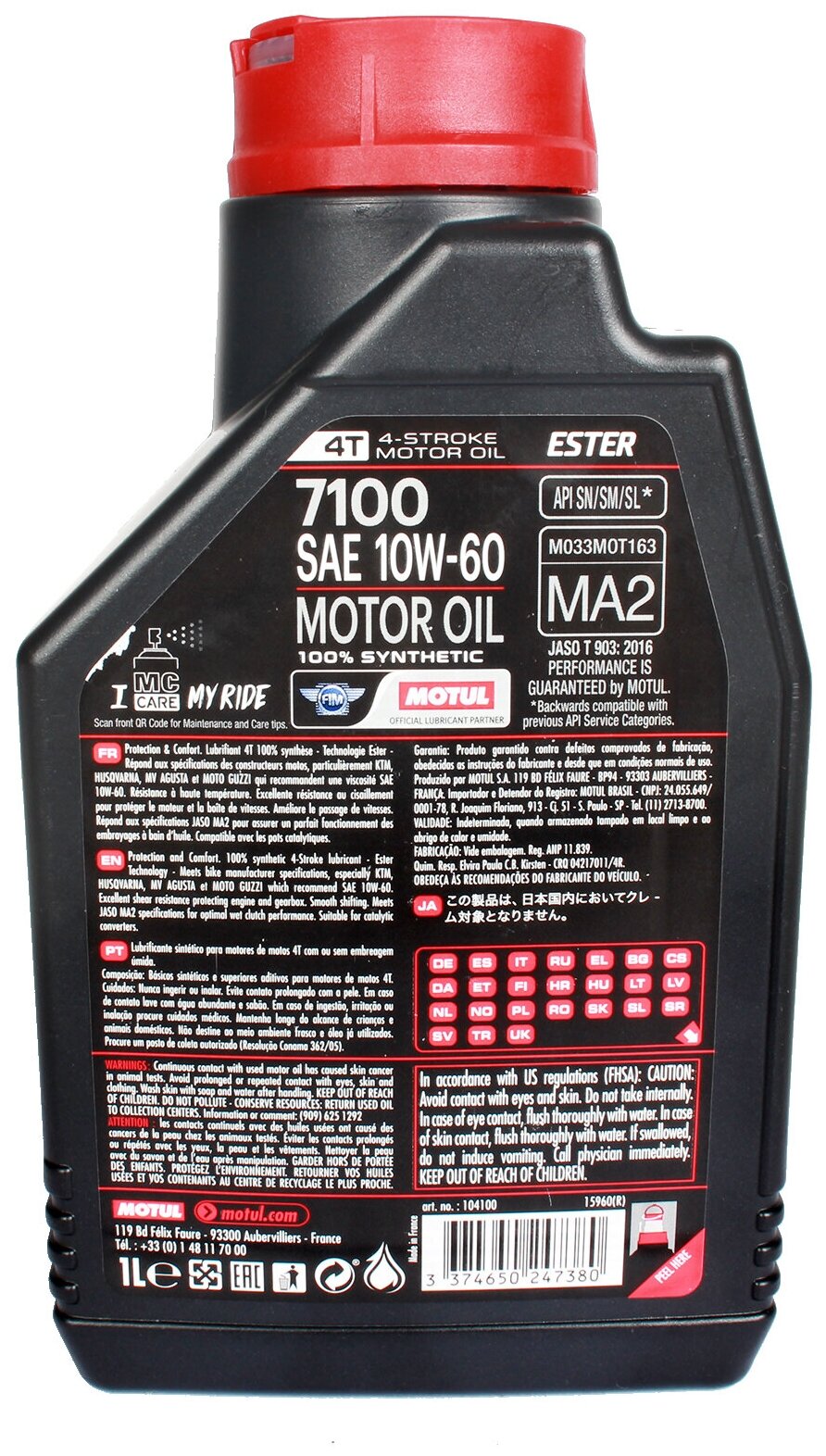 Моторное масло MOTUL 104100 Масло моторное 7100 4T 10W60 синт.1л MOTUL
