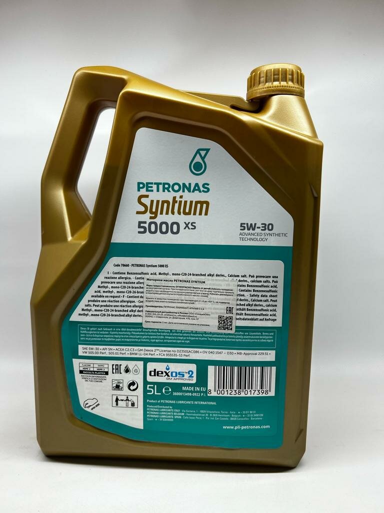 Моторное масло PETRONAS SYNTIUM 5000 XS 5W-30 Синтетическое 5л MB-Approval 229.51, GM Dexos 2, OV 040 1547-D30, VW 505.00/505.01, BMW Longlife-04, FCA 955535-S3, API SN, ACEA C2 C3, 70660M12EU