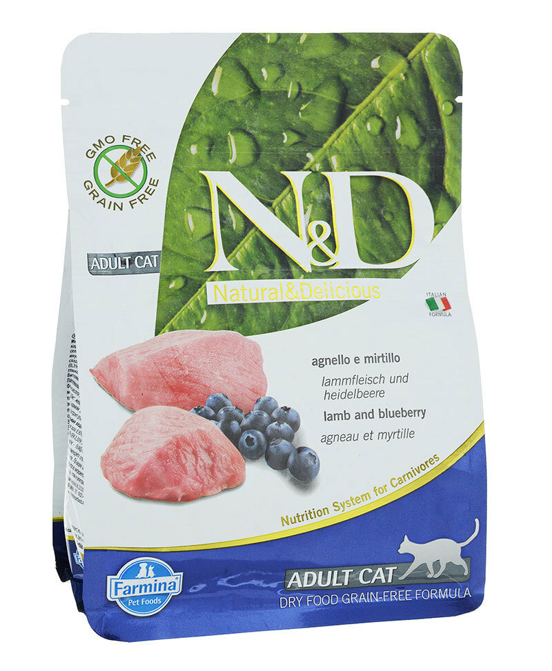 Корм беззерновой FARMINA N&D Grain Free Cat Lamb & Blueberry Adult для взрослых кошек, ягненок с черникой 1,5 кг