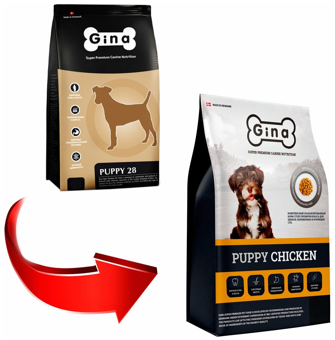 Корм для собак GINA PUPPY CHICKEN для щенков всех пород, беременных и кормящих сук с курицей (18 кг)